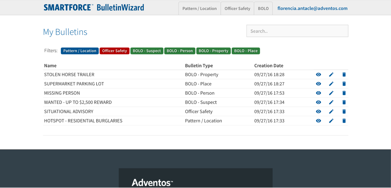 Filter using different types of bulletins.