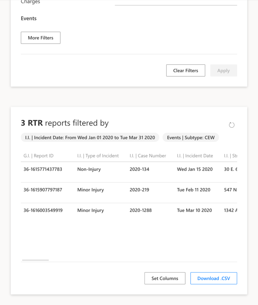 Once you apply a combination of filters, you will see the results sorted by Incident Date.